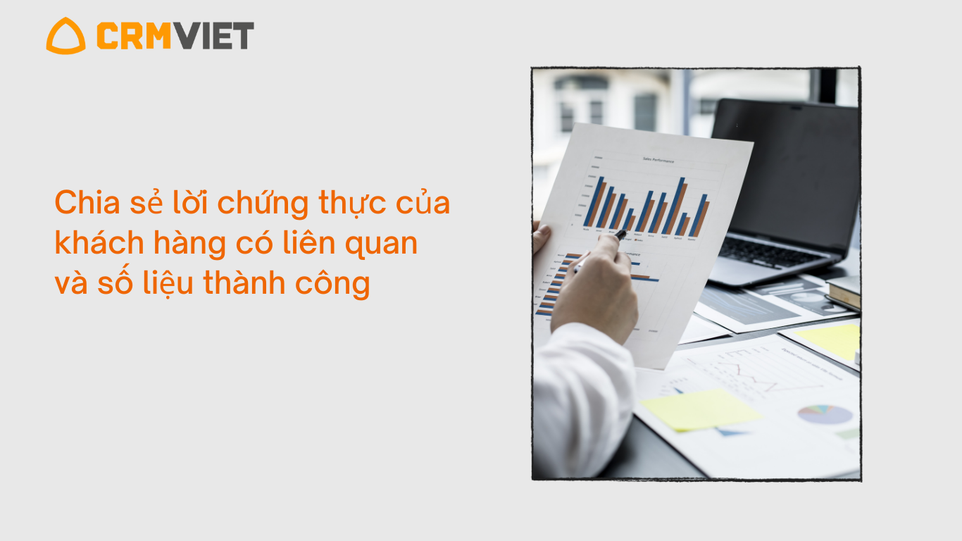 Khi bạn tham gia các cuộc trò chuyện bán hàng sau này xung quanh các tính năng của sản phẩm và ROI, đừng chỉ đưa ra các bản demo. Cung cấp dữ liệu khách hàng tiềm năng cho thấy tác động của các tính năng sản phẩm trong các ngành tương tự. Thêm các nghiên cứu điển hình để giúp bạn đưa ra quan điểm chính xác. Ví dụ: “BuildIt, một tổ chức phi lợi nhuận về sản xuất, đã gặp khó khăn trong việc tìm kiếm khách hàng trong hầu hết năm 2021. Để thử nghiệm, họ đã thêm các biểu ngữ bật lên của chúng tôi vào trang chủ của họ. Chỉ riêng trong quý 1 năm ngoái, họ đã chứng kiến tỷ lệ chuyển đổi tăng 30%.