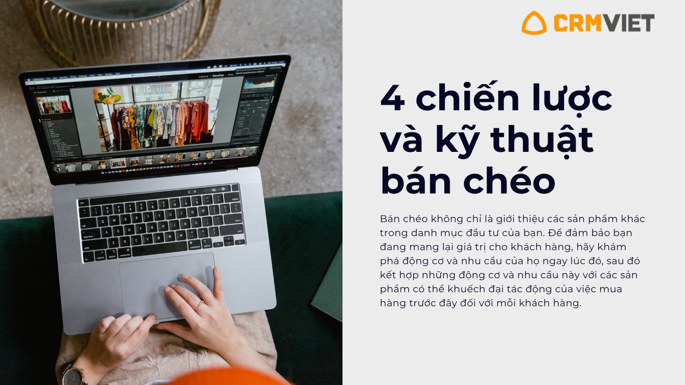 Phần hay nhất về bán chéo: Đó là một chiến thuật thành công trong hầu hết mọi ngành. Để đảm bảo thành công, hãy xác định các sản phẩm bổ sung của bạn và ghi nhớ chúng sau khi có được khách hàng mới. Ngoài ra, hãy nhớ rằng bán chéo không chỉ mang lại nhiều doanh thu hơn. Đó là việc mang lại thành công lâu dài cho khách hàng, tạo dựng niềm tin. Đó là tấm vé vàng để đạt được doanh thu và chỉ tiêu dễ dàng hơn.