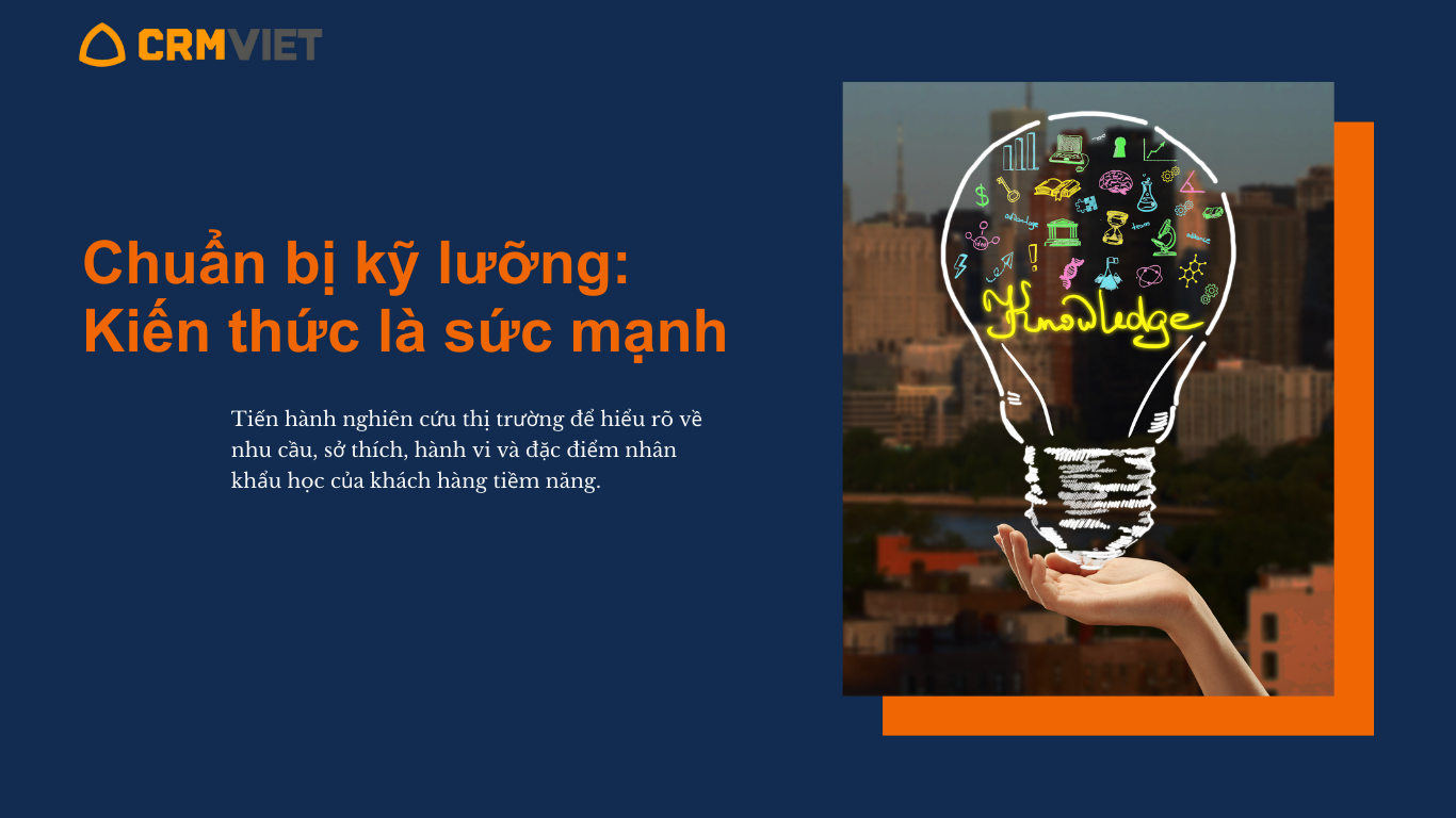 • Nghiên cứu khách hàng: Nghiên cứu sâu về ngành, quy mô công ty và các giao dịch gần đây của khách hàng. Hiểu rõ những hạn chế về ngân sách của họ và những người có thể ra quyết định mua hàng.