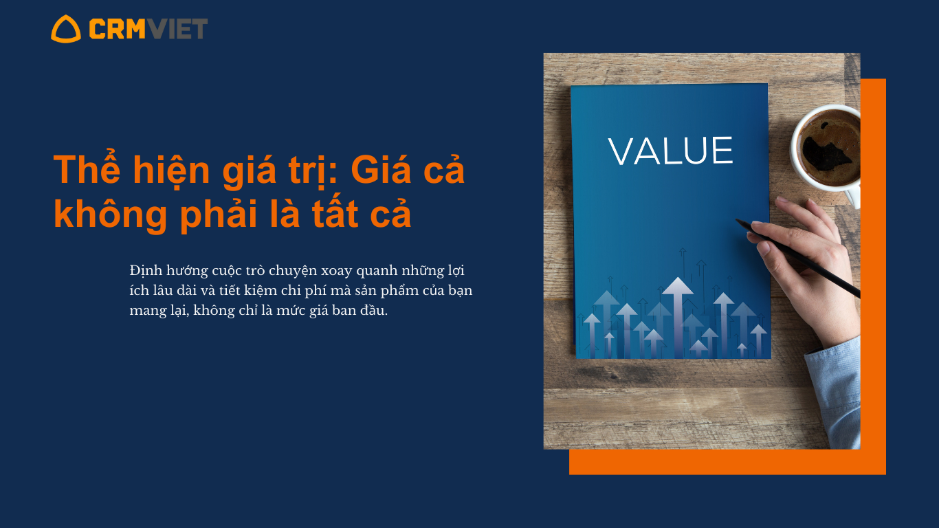 • Tập trung vào giá trị, không chỉ chi phí: Định hướng cuộc trò chuyện xoay quanh những lợi ích lâu dài và tiết kiệm chi phí mà sản phẩm của bạn mang lại, không chỉ là mức giá ban đầu.