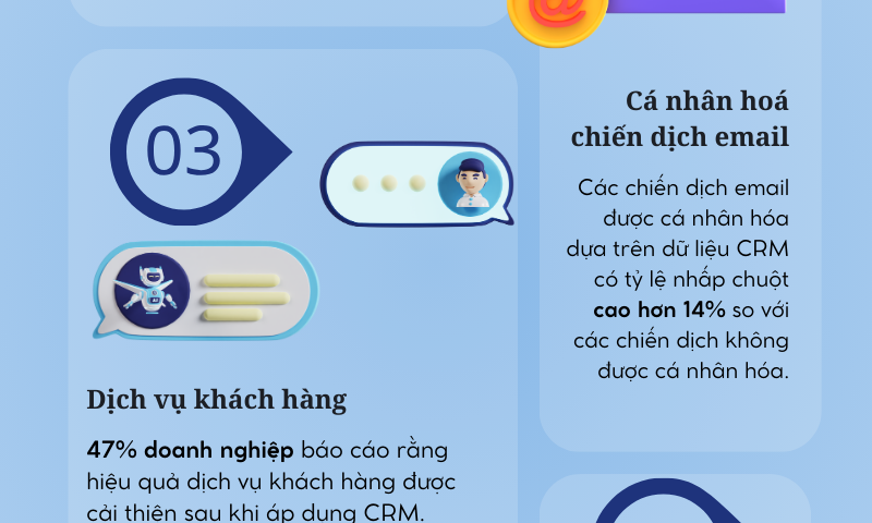 Để thúc đẩy mức độ tương tác của khách hàng với CRM, hãy tập trung vào việc sử dụng dữ liệu để cá nhân hóa các tương tác, đặc biệt là trong các chiến dịch email, nơi có tỷ lệ tương tác cao hơn. Cải thiện hiệu quả dịch vụ khách hàng bằng cách tự động hóa các tác vụ hỗ trợ và theo dõi các tương tác theo thời gian thực. Ưu tiên các chiến lược giữ chân khách hàng, vì các doanh nghiệp sử dụng CRM thấy mức độ hài lòng và giữ chân khách hàng tăng đáng kể, dẫn đến nhiều lần mua hàng lặp lại và lòng trung thành lâu dài.