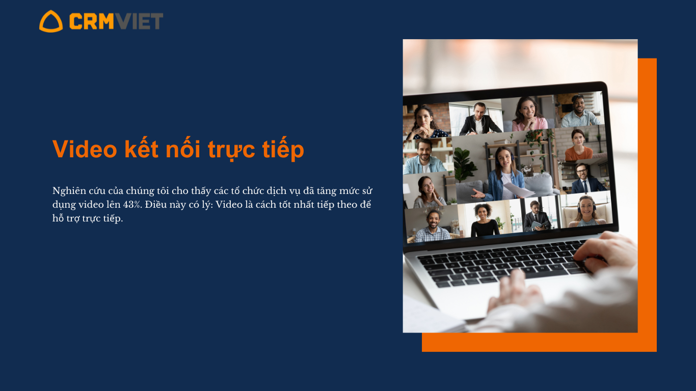 Nghiên cứu của chúng tôi cho thấy các tổ chức dịch vụ đã tăng mức sử dụng video lên 43%. Điều này có lý: Video là cách tốt nhất tiếp theo để hỗ trợ trực tiếp.