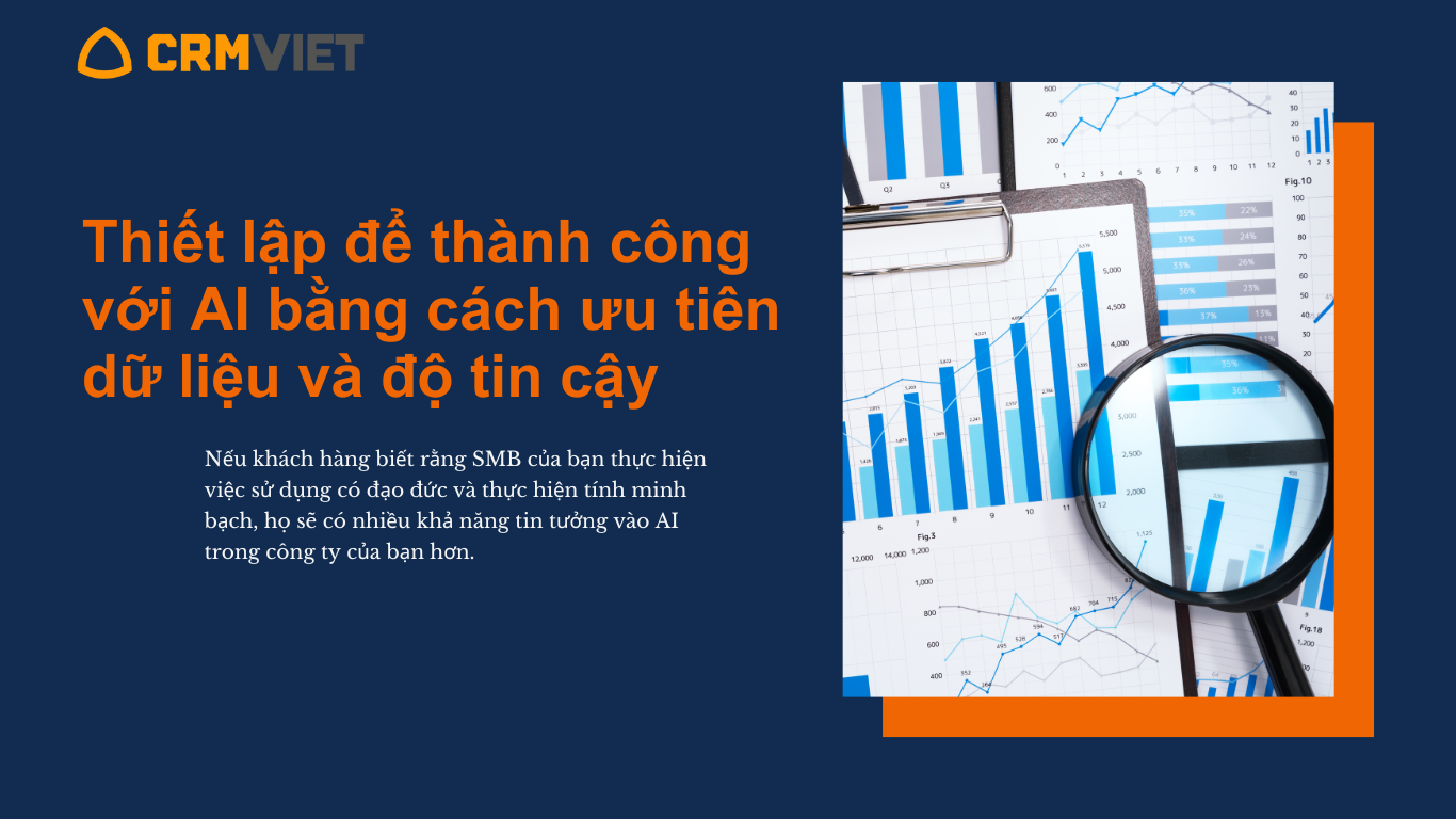 Hiện tại có khoảng cách niềm tin rõ ràng giữa khách hàng và công ty khi nói đến AI. Nhưng cũng giống như bất kỳ công nghệ nào, việc thiết lập trước các chính sách và hướng dẫn là điều cần thiết. Nếu khách hàng biết rằng SMB của bạn thực hiện việc sử dụng có đạo đức và thực hiện tính minh bạch, họ sẽ có nhiều khả năng tin tưởng vào AI trong công ty của bạn hơn.
