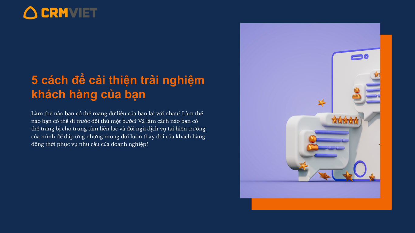 Cải thiện trải nghiệm của khách hàng bắt đầu bằng việc đặt câu hỏi phù hợp. Làm thế nào bạn có thể mang dữ liệu của bạn lại với nhau? Làm thế nào bạn có thể đi trước đối thủ một bước? Và làm cách nào bạn có thể trang bị cho trung tâm liên lạc và đội ngũ dịch vụ tại hiện trường của mình để đáp ứng những mong đợi luôn thay đổi của khách hàng đồng thời phục vụ nhu cầu của doanh nghiệp?